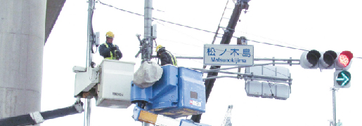 長年培ってきた鉄道保安設備のフェールセーフ技術をベースとし、日信電設では、交通を安全円滑にする道路交通システムを施工しています。また、災害から地域住民を守るデジタル防災無線システム施工等の幅広い事業を展開しています。将来の自動運転では路車間通信、移動体通信等のインフラの拡大が見込まれる中、時代の変化を先取りし、積極的に新技術の獲得と新規市場に挑戦していきます。